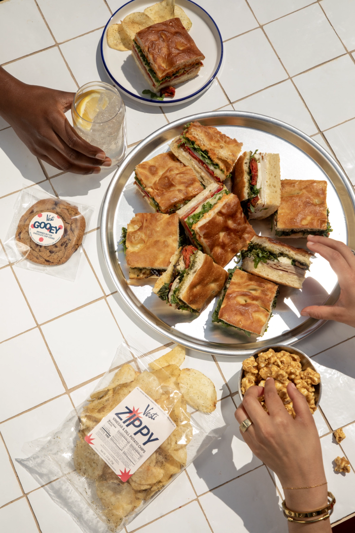 Today, their sandwiches are served in over 40 locations around LA. Vesti sandwiches aren't bound by borders or tradition—they're a true American original. Built with premium meats, punchy cheeses, and house-made spreads, every bite is piled into their signature, light and airy Vesti focaccia.